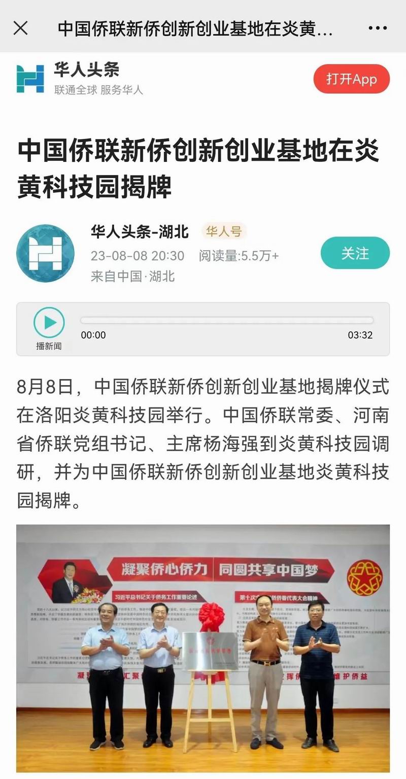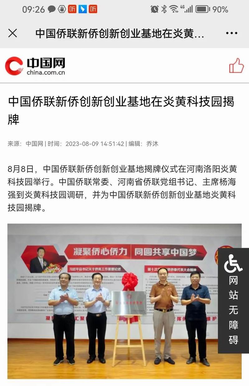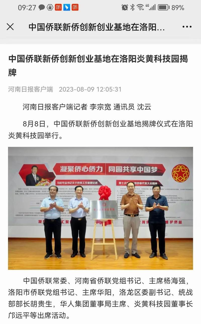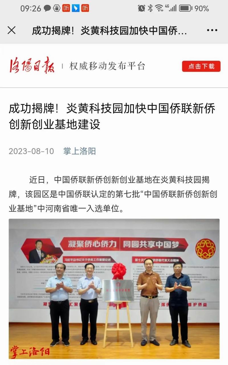 位于洛陽市洛龍區的炎黃科技園,以為僑服務為宗旨,在園區打造關心、愛心、聯心、貼心和舒心的“為僑服務站”,受到各級僑聯組織的肯定和贊揚,被中國僑聯認定為“新僑創新創業基地”。近日,中國僑聯常委、河南省僑聯黨組書記、主席楊海強到炎黃科技園調研指導,為中國僑聯新僑創新創業基地炎黃科技園揭牌,引起了廣泛的關注。